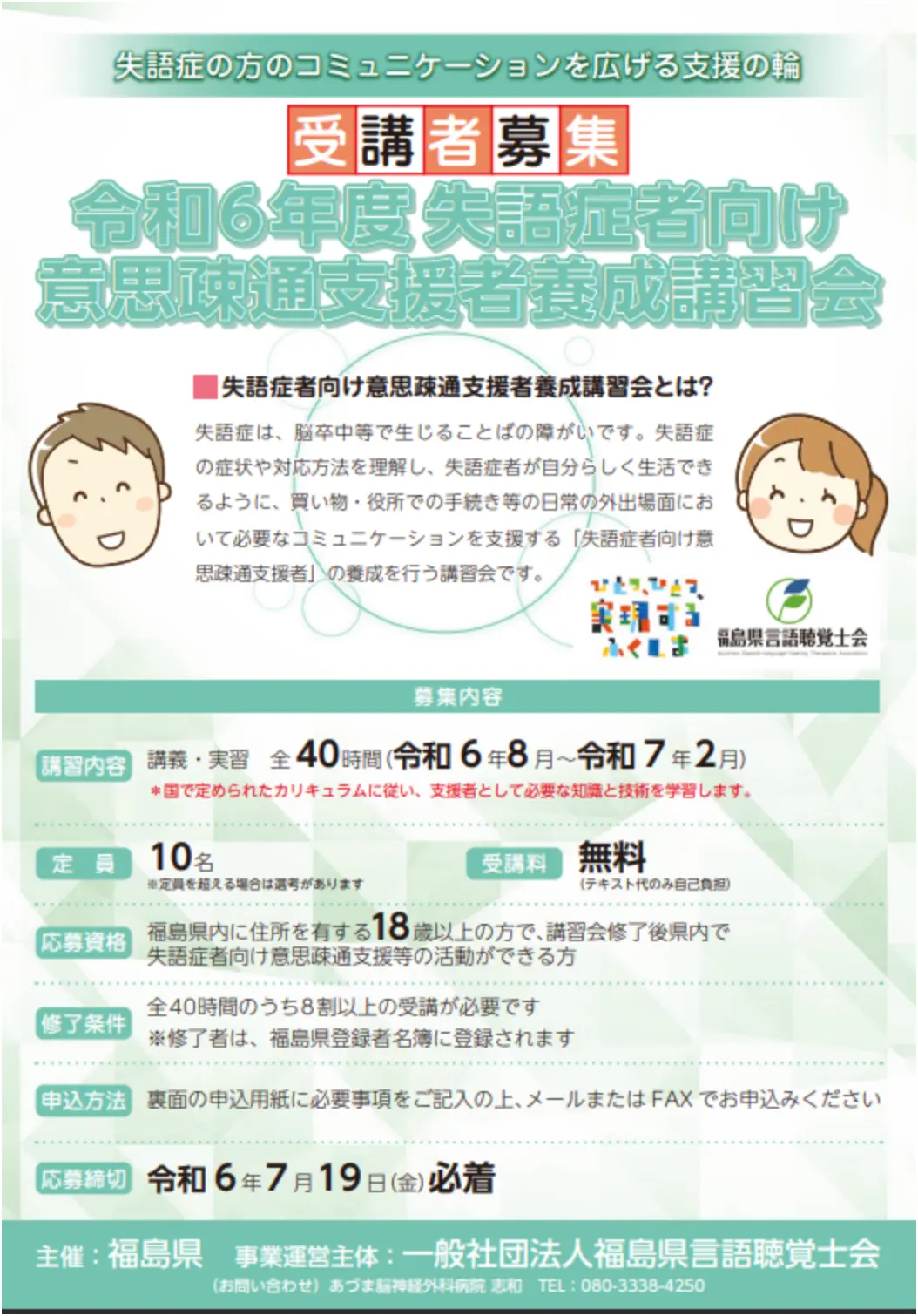 令和6年度失語症者向意思疎通支援者養成講習会 投稿日 2024-05-23 更新日 2026-03-05 著者 slide_title_stop カテゴリー トピックス 令和6年度失語症者向意思疎通支援者養成講習会 養成講習会チラシPDFファイルはこちら この記事を書いた人 slide_title_stop 記事一覧