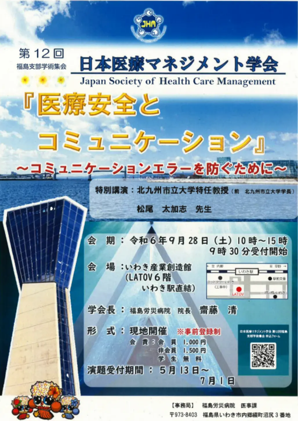 日本医療マネジメント学会第12回福島支部学術集会[9.28.] 投稿日 2024-06-05 更新日 2026-03-05 著者 slide_title_stop カテゴリー トピックス 日本医療マネジメント学会第12回福島支部学術集会[9.28.] 詳細はこちらのPDFファイルをご確認下さい この記事を書いた人 slide_title_stop 記事一覧